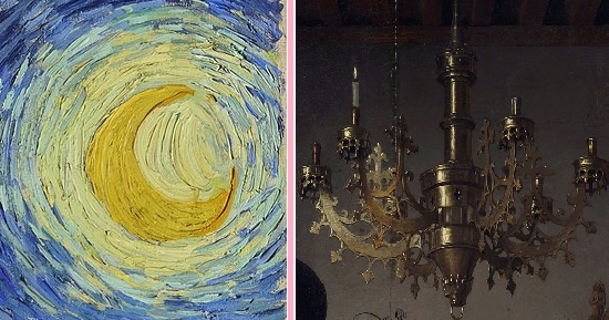 Regresando a la textura, si fuéramos a tocar La noche estrellada— antes de ser brutalmente tacleados por aproximadamente 55 encargados de seguridad— me imagino que sería como tocar el tronco de un árbol. Así como en El panel de los leones hablamos de tocar la roca, imaginen ahora que sienten la textura ligeramente rugosa de un tronco, que sus dedos sienten algunas fisuras largas y retorcidas, así como a veces se siente la vida, y que al avanzar por la composición se encuentran algunas más cortas, como oraciones que quisimos decir, pero nunca logramos terminar. Por hacer una comparación, si esta pintura se siente como un tronco vivo, el cuadro El matrimonio Arnolfini (1434) de Jan van Eyck, del que hablé en el podcast, se siente como una mesa de madera perfectamente pulida y cuidada.